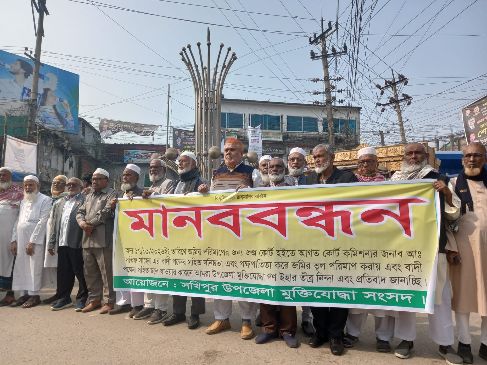 জানাযায়, উপজেলা মুক্তিযোদ্ধা কমপ্লেক্স ভবন সংলগ্ন একতলা একটি দোকানের জমির মালিকানা নিয়ে মামলার একতরফা তদন্তের প্রতিবাদে ওই কর্মকর্তার বিরুদ্ধে এ কর্মসূচির আয়োজন করা হয়। মানববন্ধনে কয়েকশত বীর মুক্তিযোদ্ধা অংশ নেন। এ সময় সখীপুর-ঢাকা ও সখীপুর-সাগরদিঘী সড়কে যানজট তৈরি হয়।