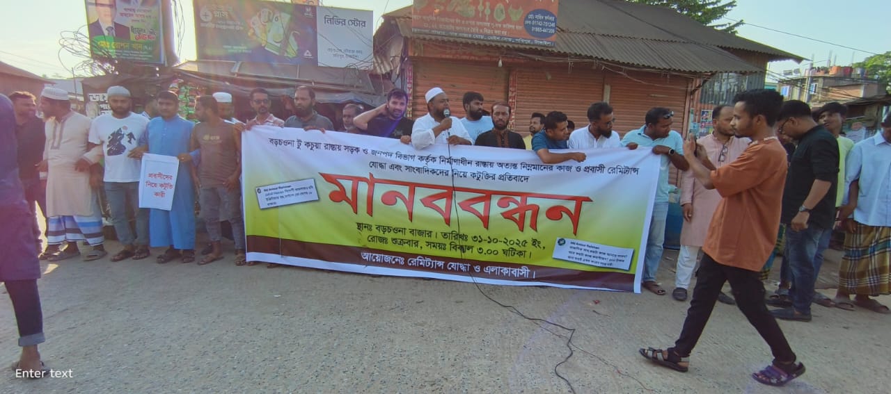 জানা যায়, কচুয়া ও বড়চওনা সড়কে নিম্নমানের কাজের প্রতিবাদ করে এক প্রবাসী ফেসবুকে স্ট্যাটাস দেওয়ার পর আনিসুর রহমান রেমিটেন্স যোদ্ধাদের কামলা বলে ও সাংবাদিকদের কটুক্তি করেন। এরই প্রেক্ষিতে ফুঁসে উঠে প্রবাসী ও এলাকাবাসী । সামাজিক যোগাযোগ মাধ্যমে প্রতিবাদের ঝড় বয়ে যায়। অবস্থা বেগতিক দেখে সড়ক ও জনপদ কর্তৃপক্ষ প্রথমে আনিসুর রহমানকে শোকজ ও পরবর্তীতে সিরাজগঞ্জ বদলি করে। মানববন্ধনে বক্তব্য রাখেন, সিকদার মোঃ সবুর রেজা, রোপন খান, ইউপি সদস্য আশরাফ, ইউপি সদস্য মিজান, মেহেদী হোসেন, মোতালেব, মামুন প্রমূখ। মানববন্ধনে বক্তারা প্রকৌশলী আনিসুর রহমানের দৃষ্টান্তমূলক শাস্তি ও কচুয়া বড়চওনা সড়কের উন্নয়ন কাজ যথাযথভাবে করার দাবি জানান।